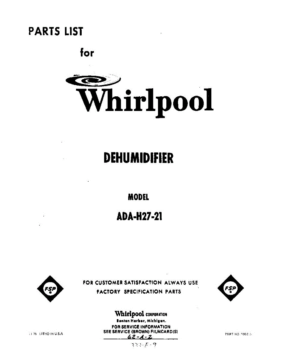 Parts for Whirlpool ADAH2721: 01 - Section Parts