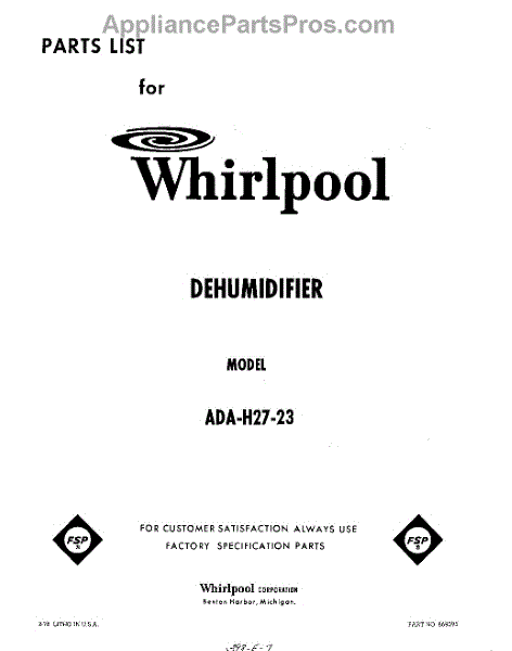 Whirlpool Dehumidifier Parts