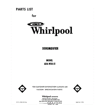 Parts for Whirlpool ADAW2021: 01 - Section Parts