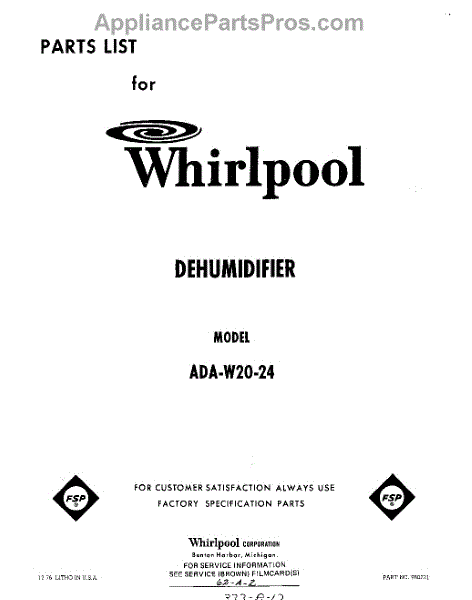 Parts for Whirlpool ADAW2024: 01 - Section Parts