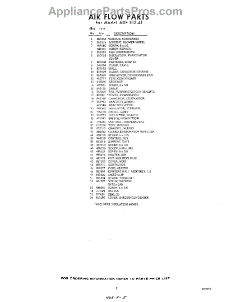 Parts for Whirlpool ADFE1241: 05 - Section Parts