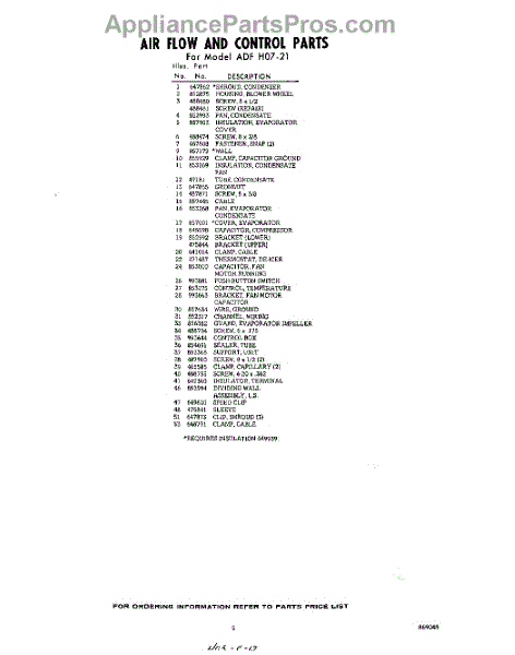 Parts for Whirlpool ADFH0721: 05 - Section Parts