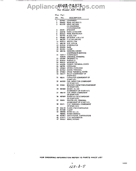 Parts for Whirlpool ADFP5020: 05 - Section Parts