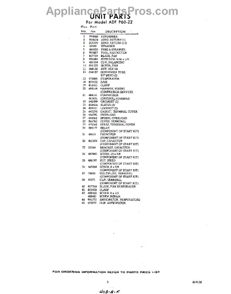Parts for Whirlpool ADFP6022: 05 - Section Parts
