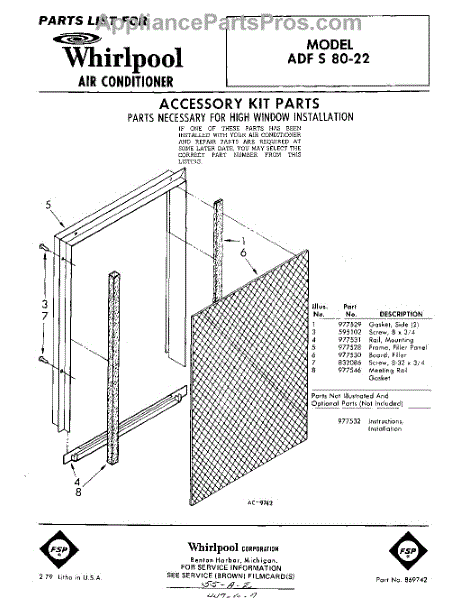 Parts for Whirlpool ADFS8022: 01 - Section Parts