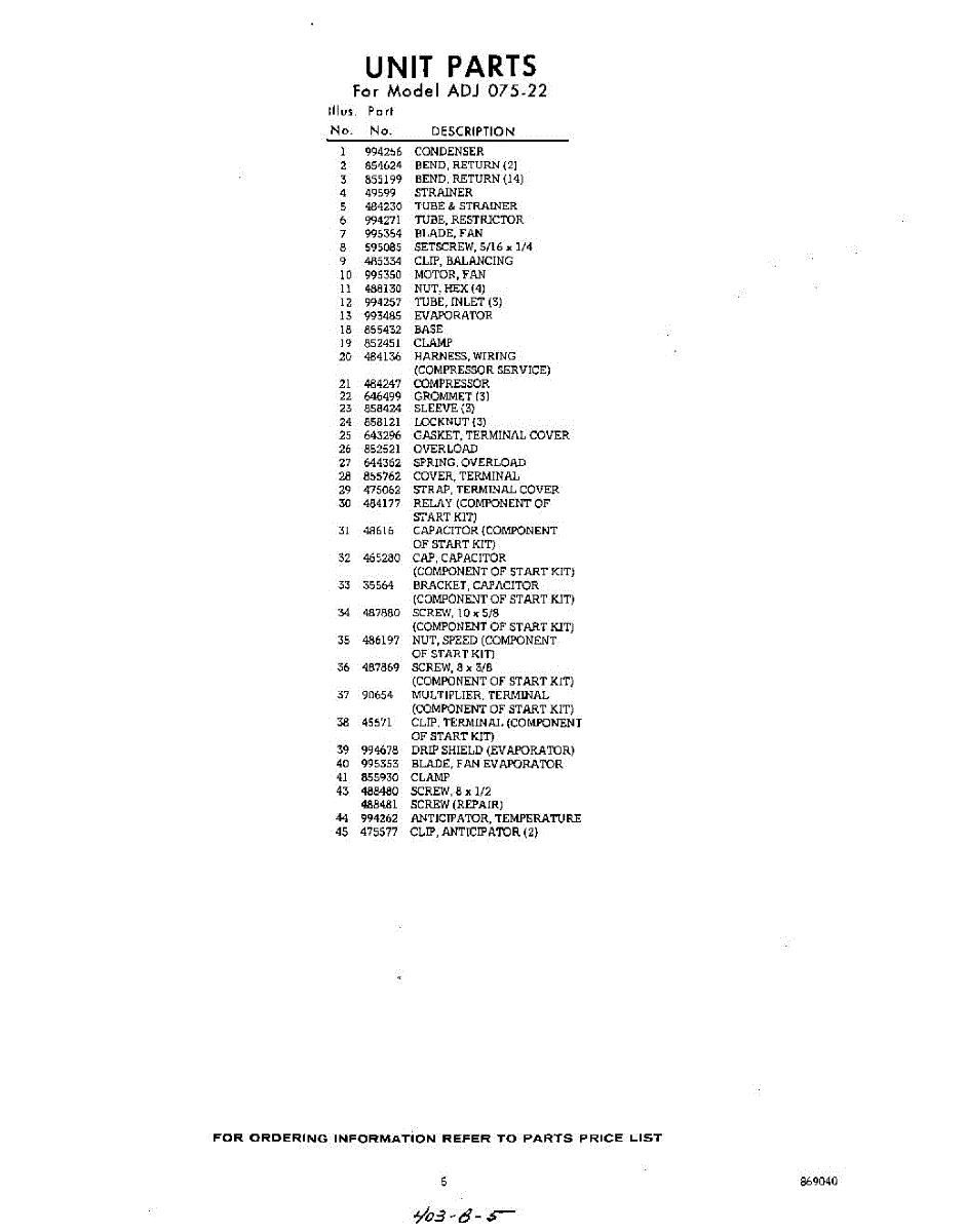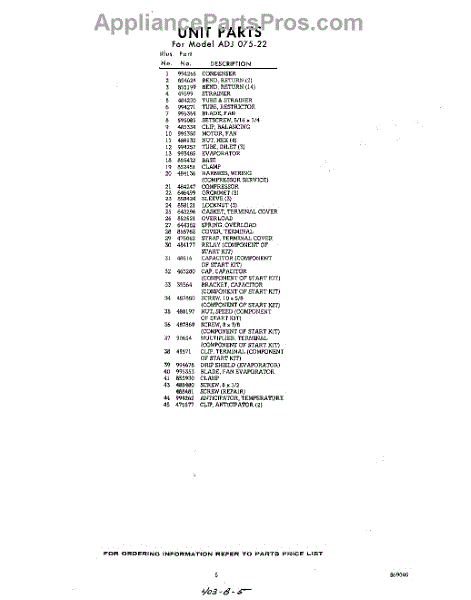 Parts for Whirlpool ADJ07522: 05 - Section Parts