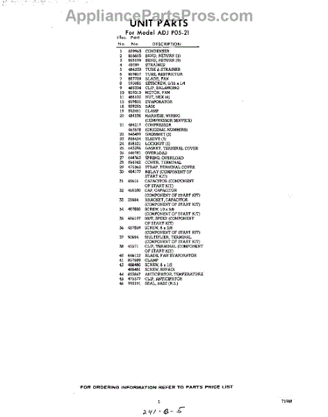 Parts for Whirlpool ADJP0521: 05 - Section Parts