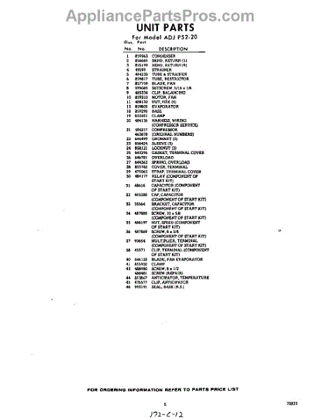 Parts for Whirlpool ADJP5220: 05 - Section Parts