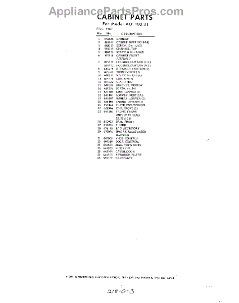 Parts for Whirlpool AEF10021: 03 - Section Parts