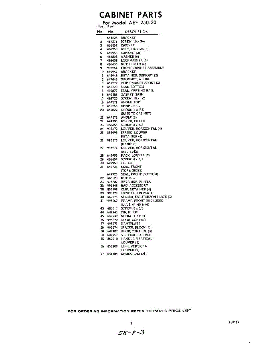 Parts for Whirlpool AEF25030: 03 - Section Parts