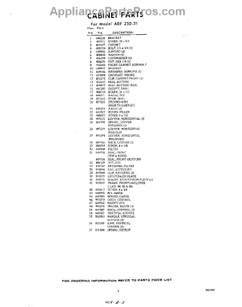 Parts for Whirlpool AEF25031: 03 - Section Parts