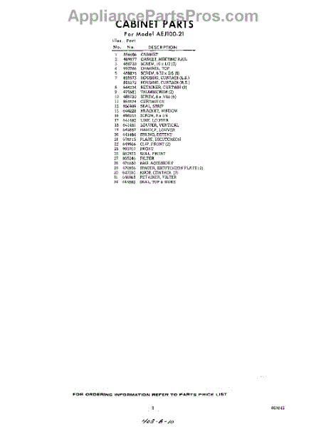 Parts for Whirlpool AEJ10021: 03 - Section Parts