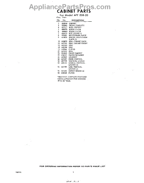 Parts for Whirlpool AFFE0820: 03 - Section Parts