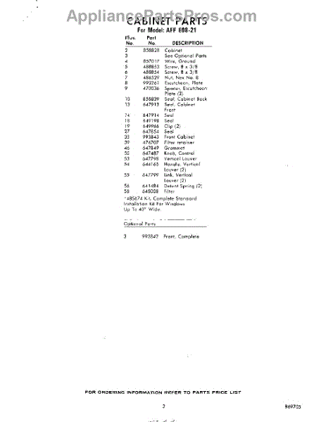 Parts for Whirlpool AFFE0821: 03 - Section Parts