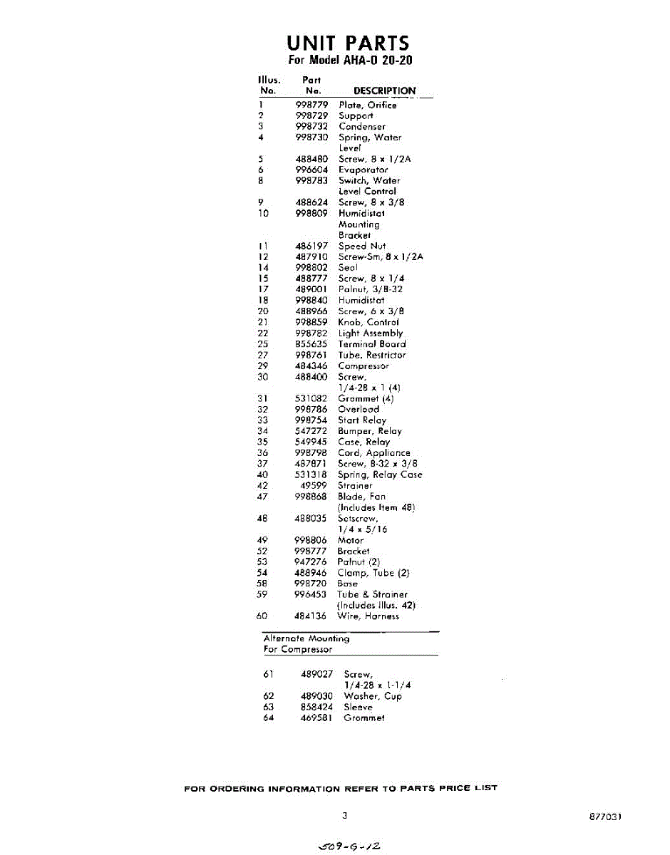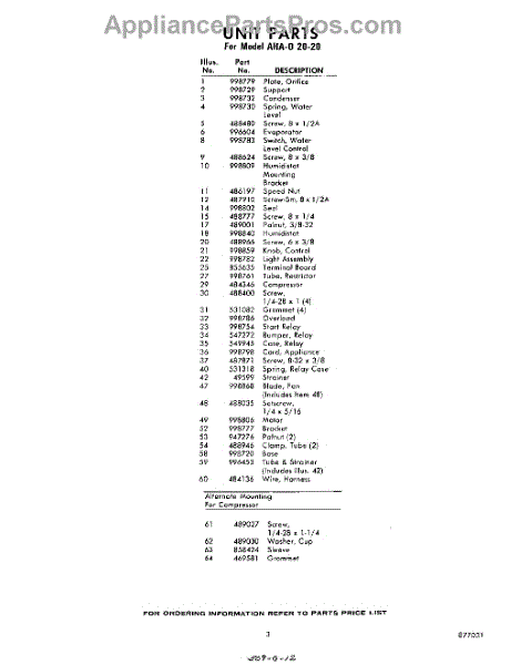 Parts for Whirlpool AHA02020: 03 - Section Parts
