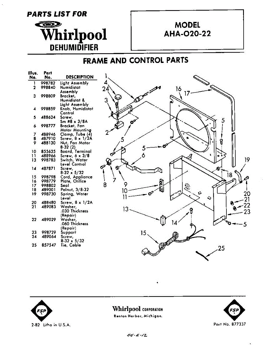 Parts for Whirlpool AHA02022: 01 - Section Parts