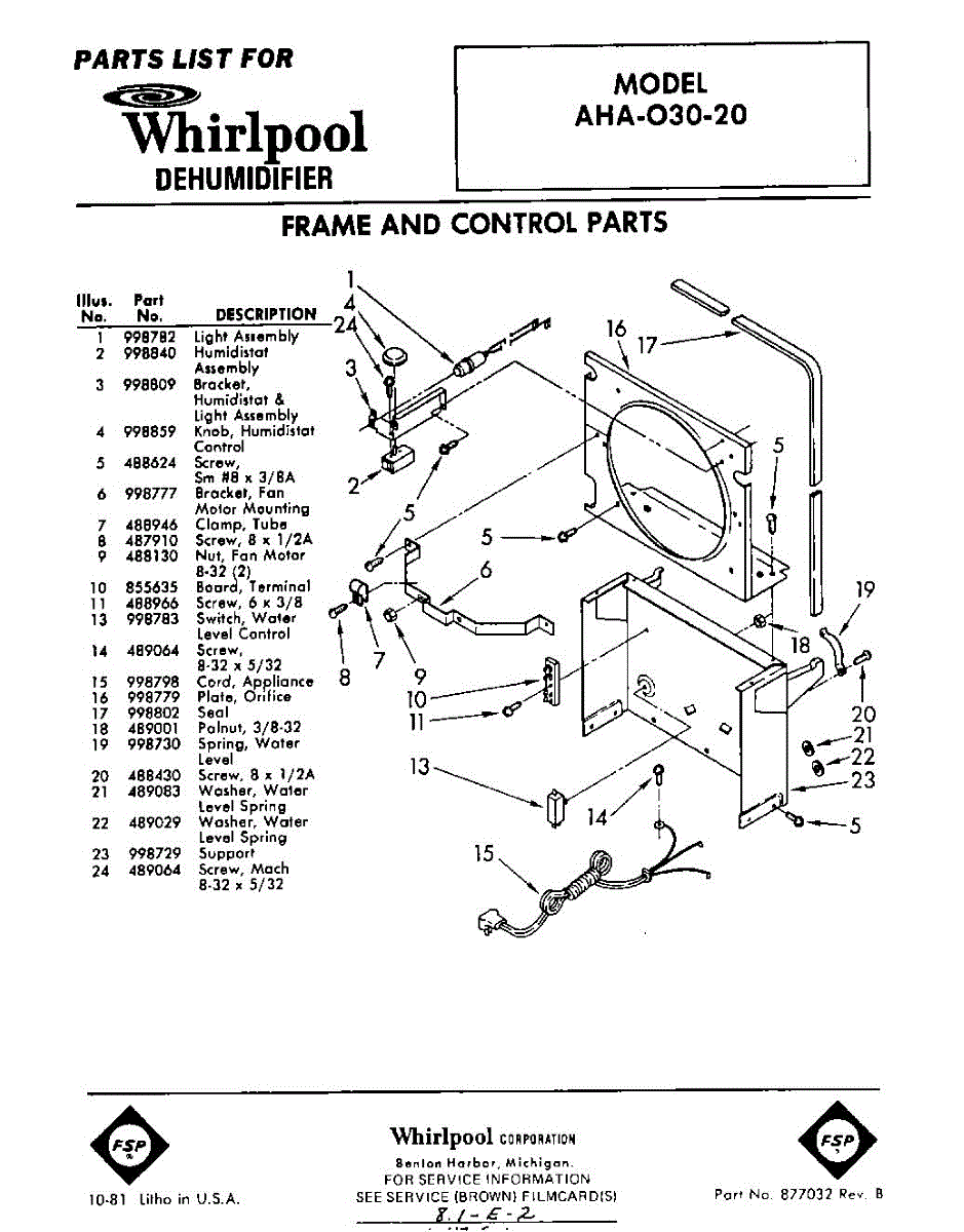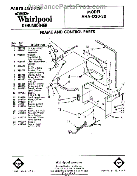 Parts for Whirlpool AHA03020: 01 - Section Parts