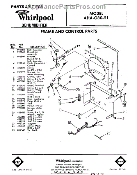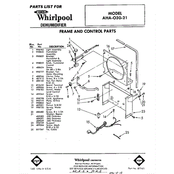 Parts for Whirlpool AHA03021: 01 - Section Parts