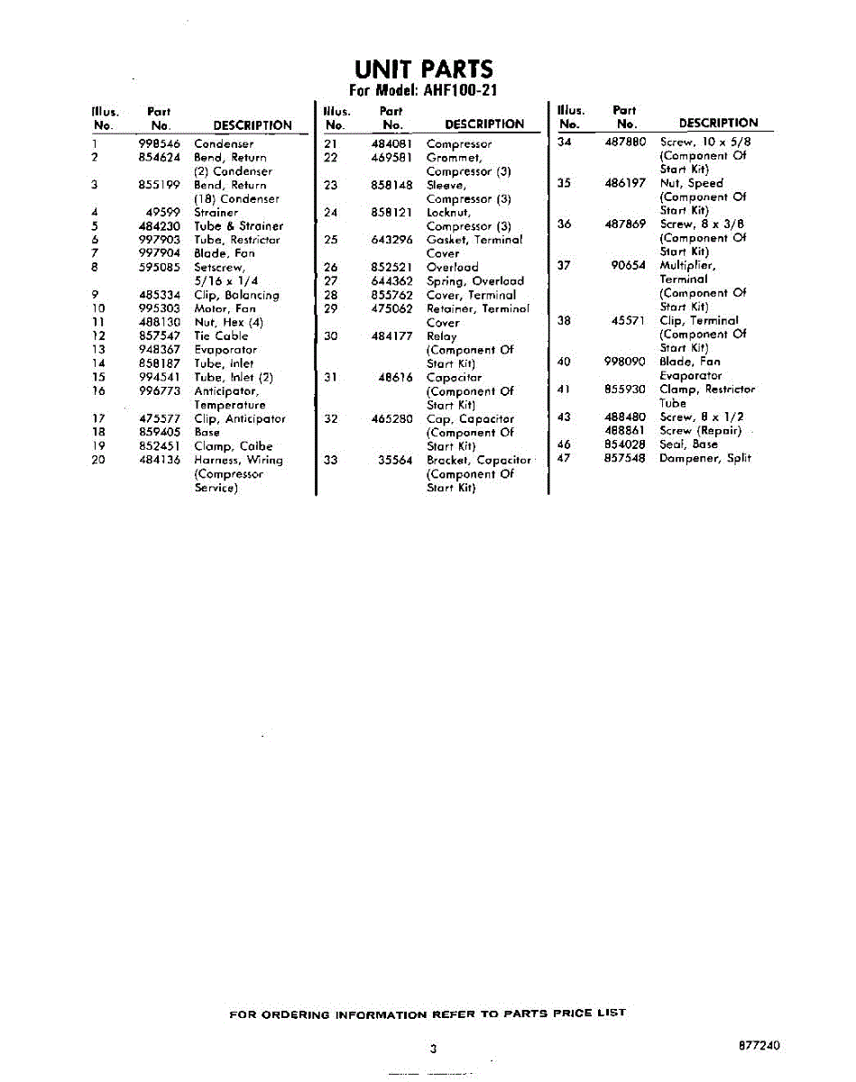 Parts for Whirlpool AHF10021: 03 - Section Parts