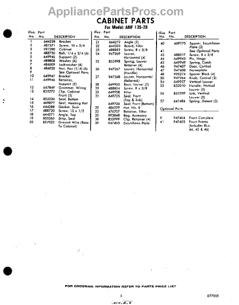 Parts for Whirlpool AHF13520: 03 - Section Parts