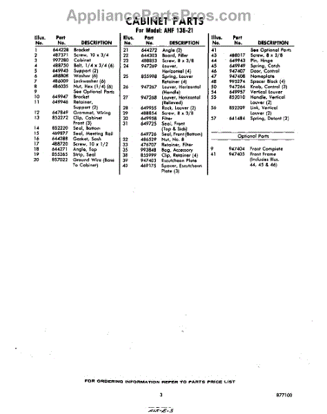 Parts for Whirlpool AHF13521: 03 - Section Parts