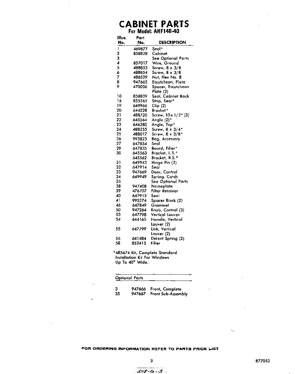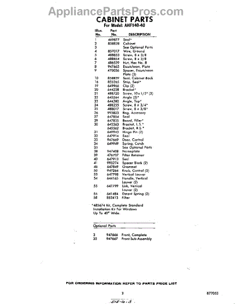 Parts for Whirlpool AHF14040: 03 - Section Parts