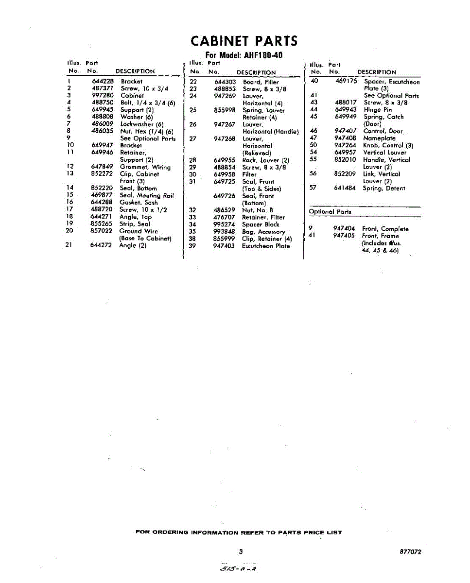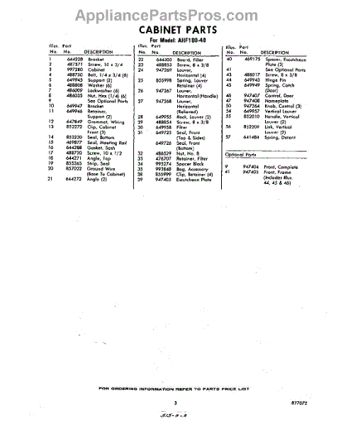Parts for Whirlpool AHF18040: 03 - Section Parts