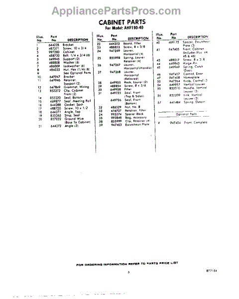 Parts for Whirlpool AHF19040: 03 - Section Parts