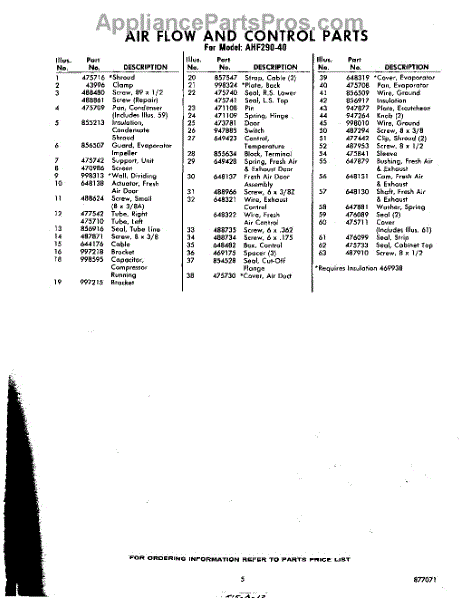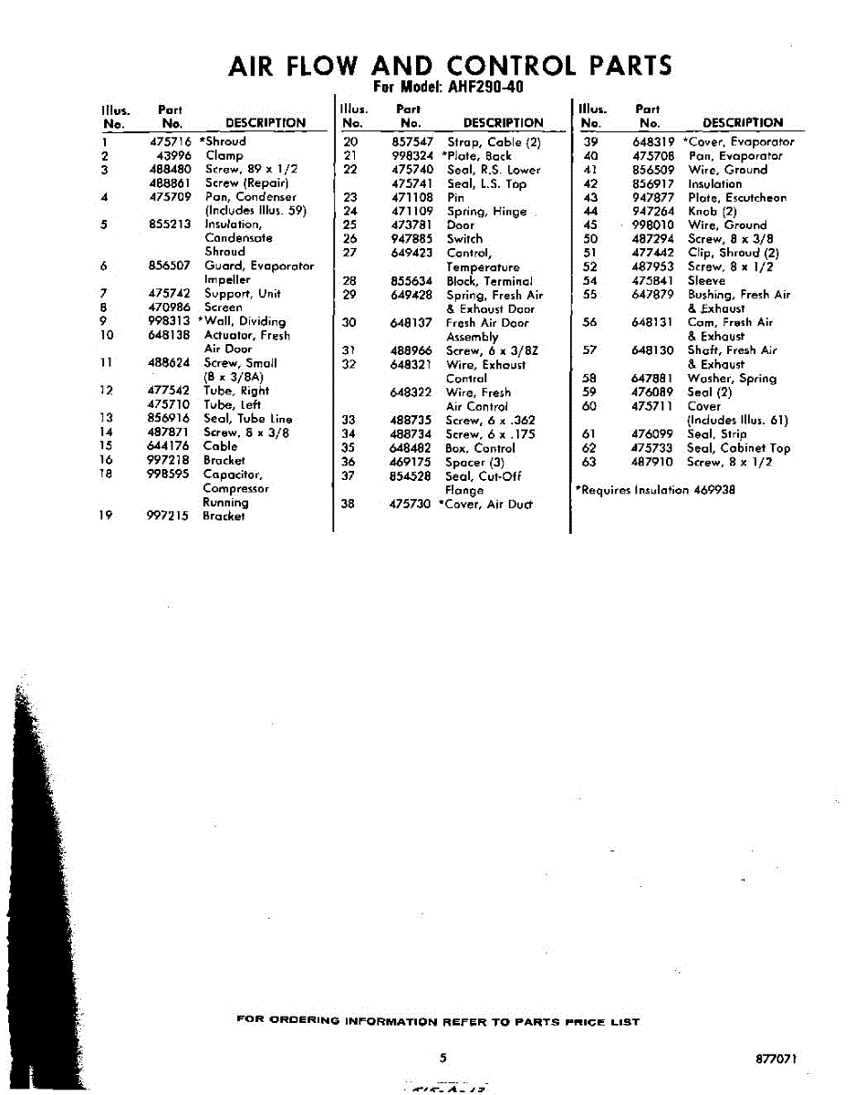 Parts for Whirlpool AHF29040: 05 - Section Parts