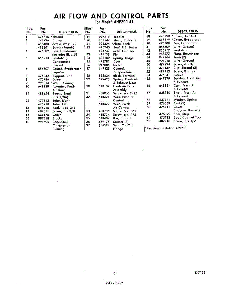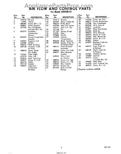 Parts for Whirlpool AHF29041: 05 - Section Parts
