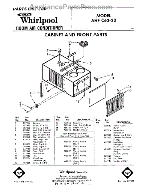 Parts for Whirlpool AHFC6320: 01 - Section Parts