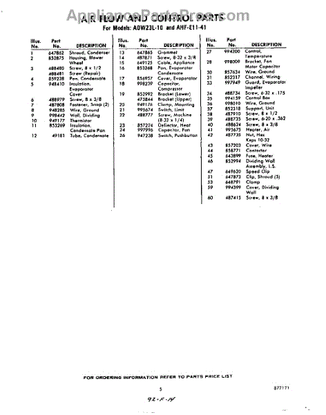 Parts for Whirlpool AHFE1141: 05 - Section Parts
