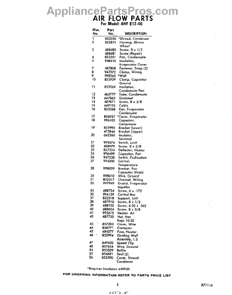 Parts for Whirlpool AHFE1240: 05 - Section Parts