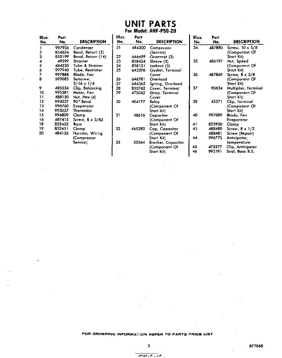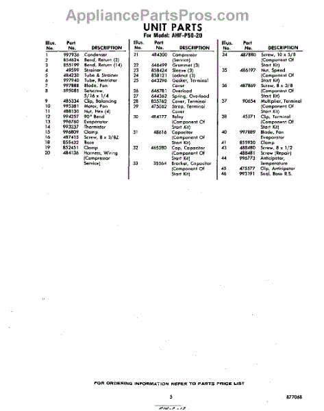 Parts for Whirlpool AHFP5020: 05 - Section Parts