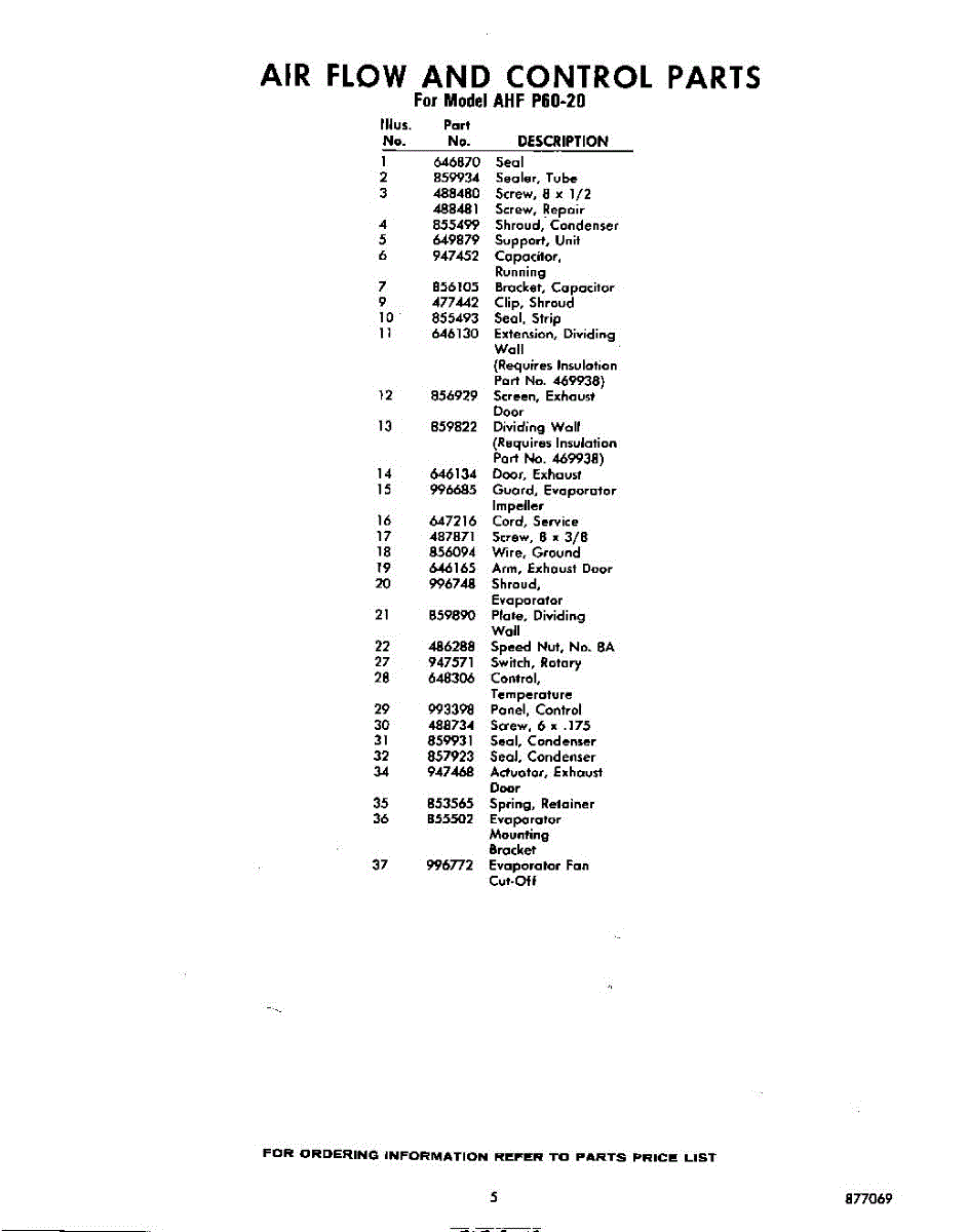 Parts for Whirlpool AHFP6020: 05 - Section Parts