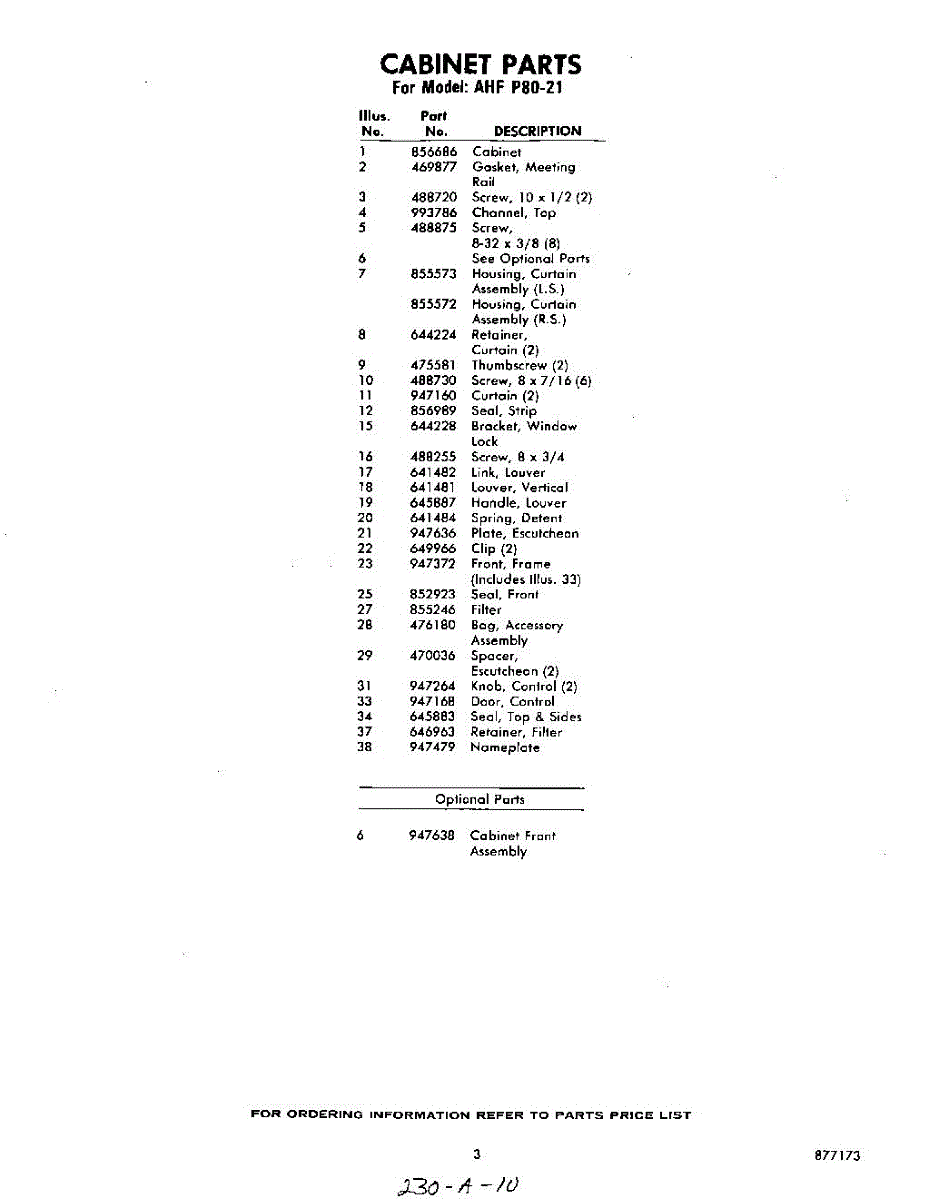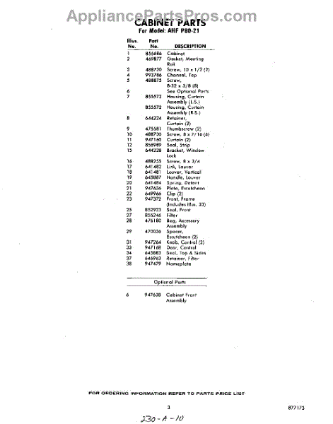 Parts for Whirlpool AHFP8021: 03 - Section Parts