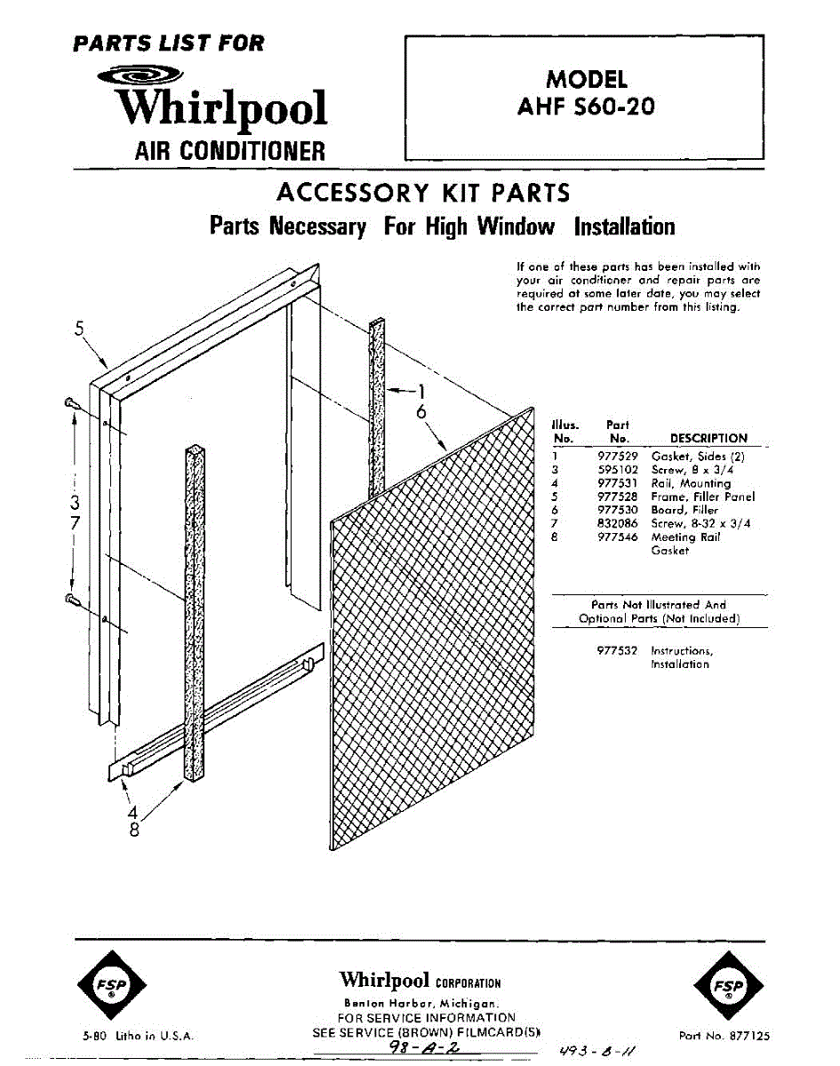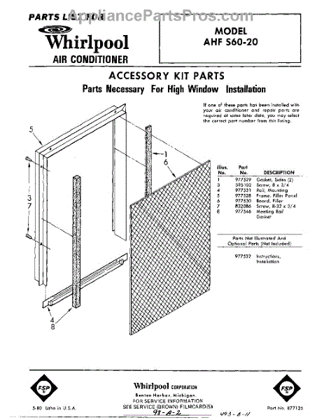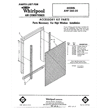 Parts for Whirlpool AHFS6020: 01 - Section Parts