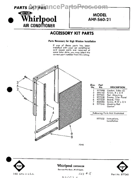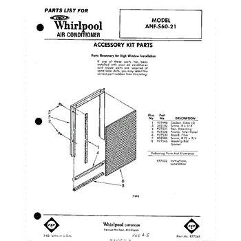 Parts for Whirlpool AHFS6021: 01 - Section Parts