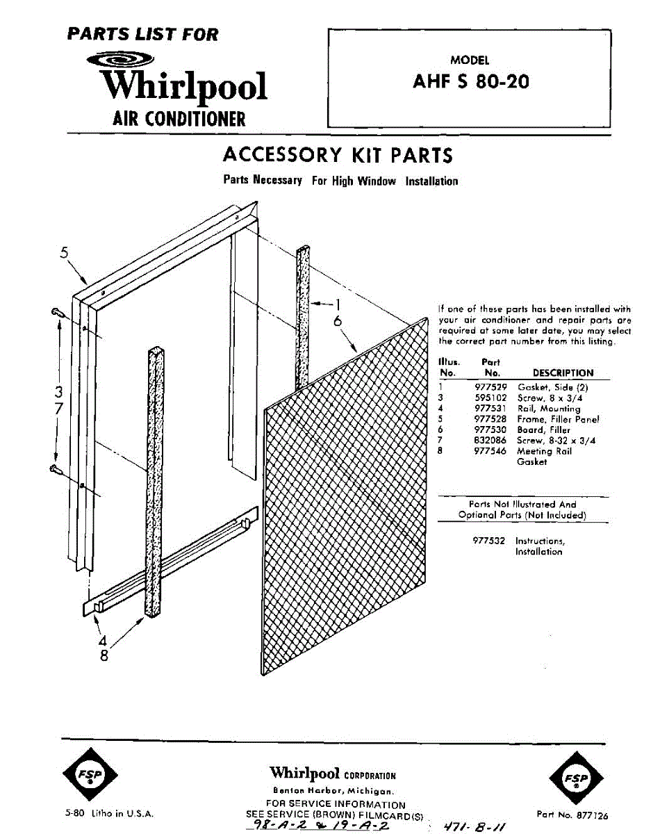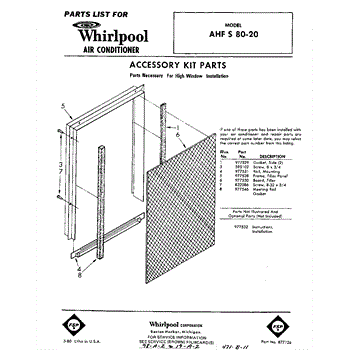 Parts for Whirlpool AHFS8020: 01 - Section Parts