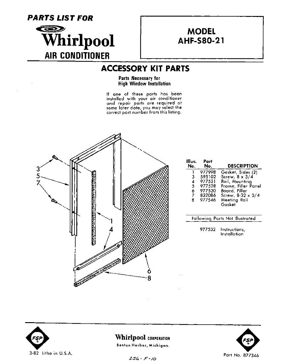 Parts for Whirlpool AHFS8021: 01 - Section Parts