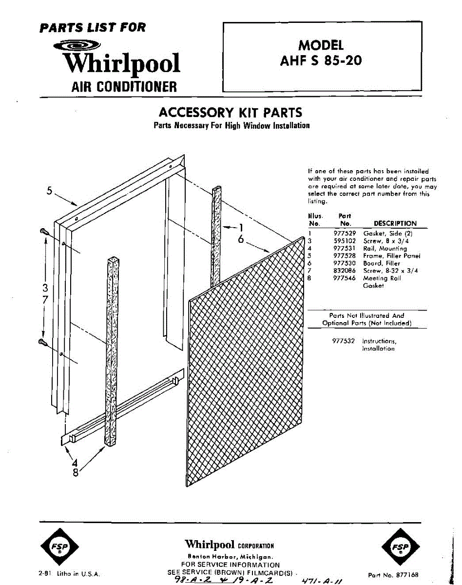 Parts for Whirlpool AHFS8520: 01 - Section Parts