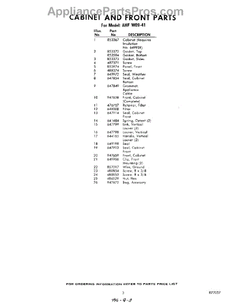 Parts for Whirlpool AHFW0941: 03 - Section Parts