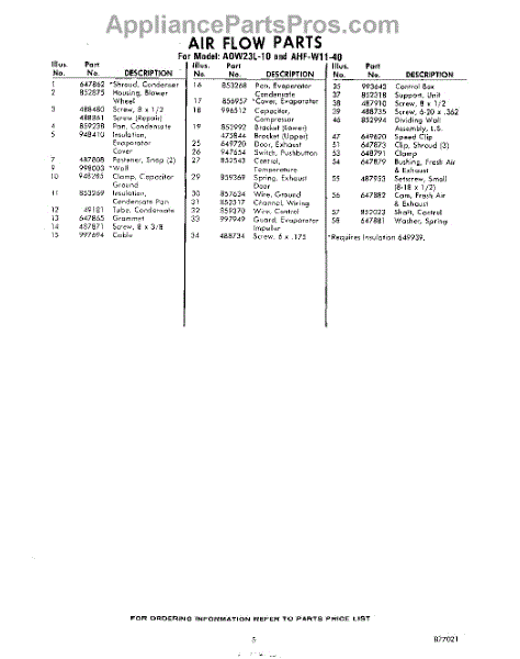 Parts for Whirlpool AHFW1140: 05 - Section Parts