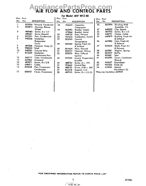 Parts for Whirlpool AHFW1240: 05 - Section Parts