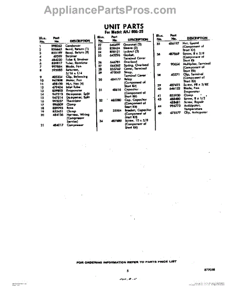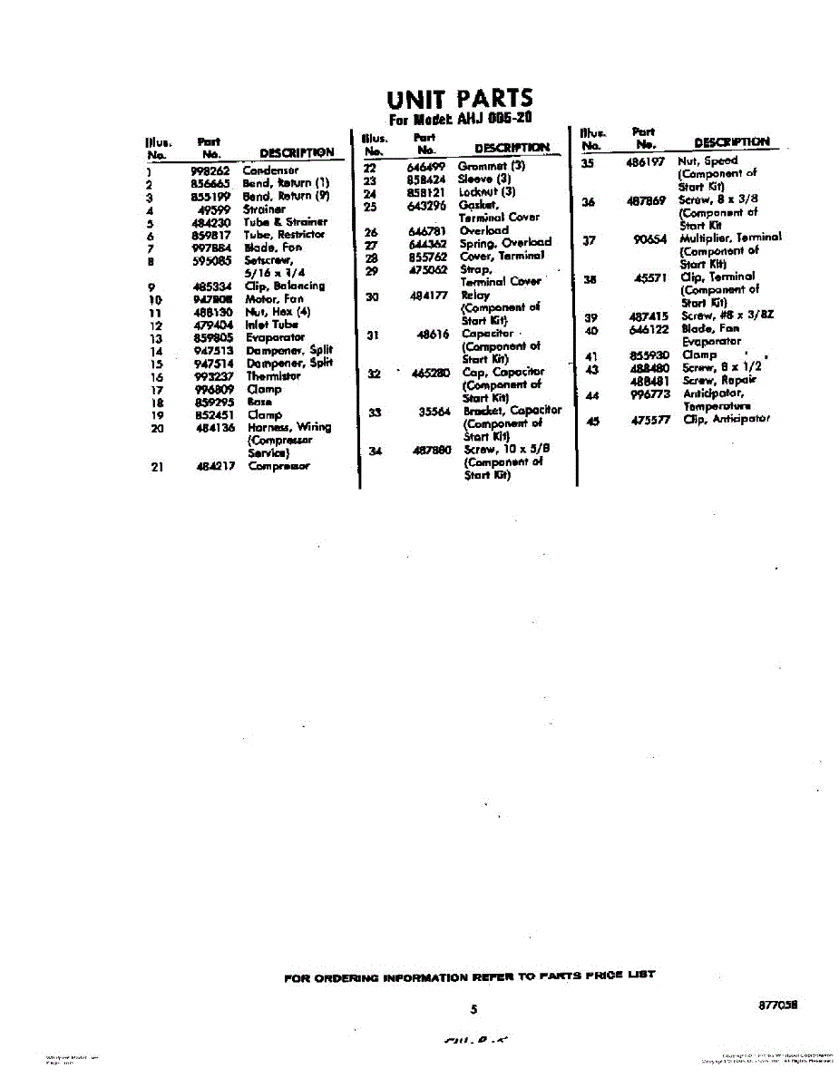 Parts for Whirlpool AHJ00520: 05 - Section Parts