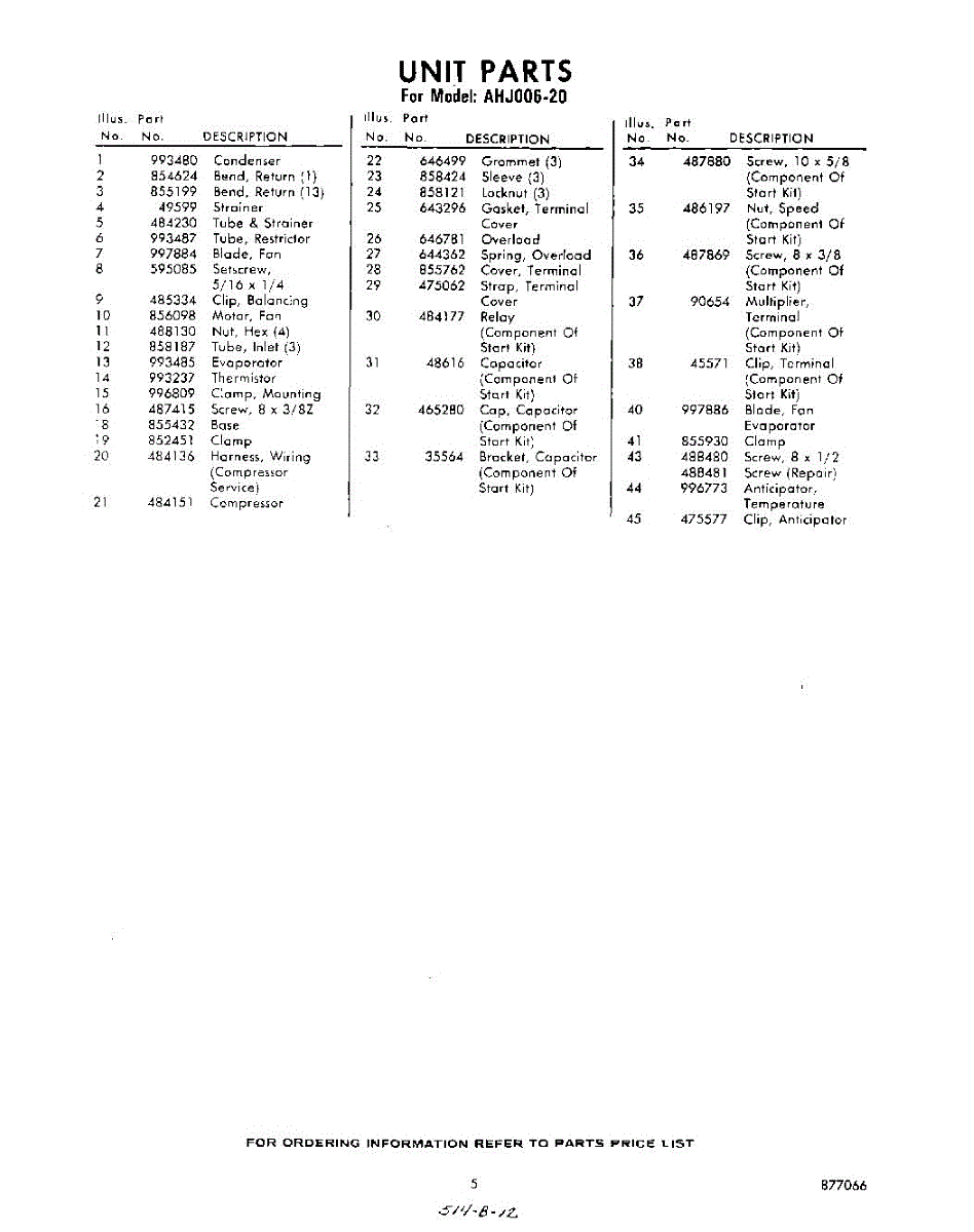 Parts for Whirlpool AHJ00620: 05 - Section Parts