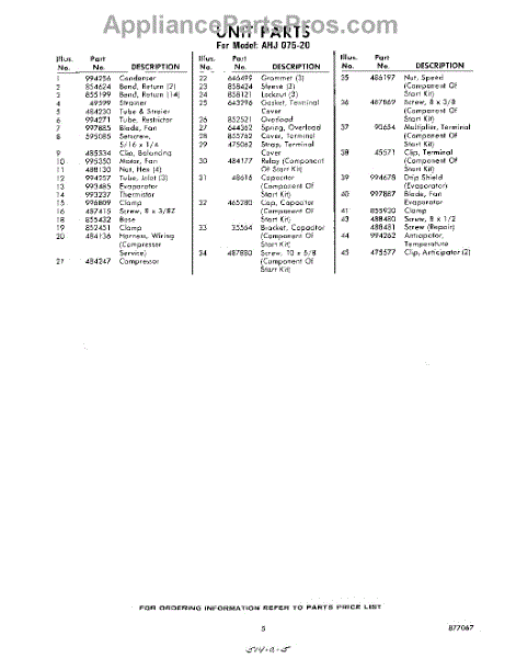 Parts for Whirlpool AHJ07520: 05 - Section Parts