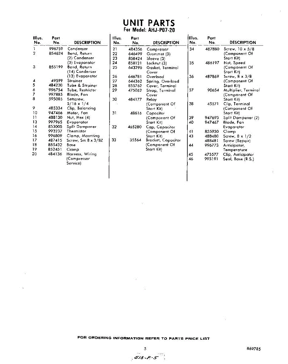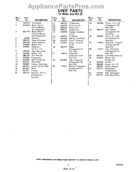 Parts for Whirlpool AHJP0720: 05 - Section Parts