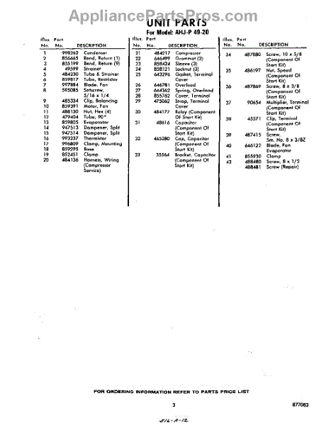 Parts for Whirlpool AHJP4920: 03 - Section Parts