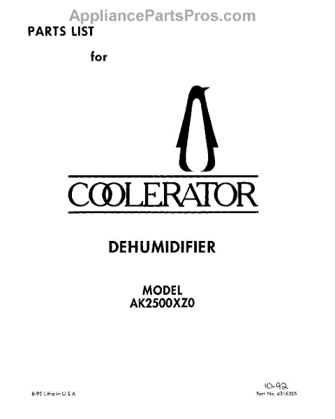 Whirlpool Dehumidifier Parts